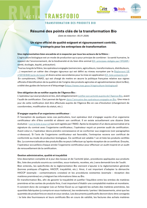 Valoriser la transformation bio par une expertise technique et règlementaire
